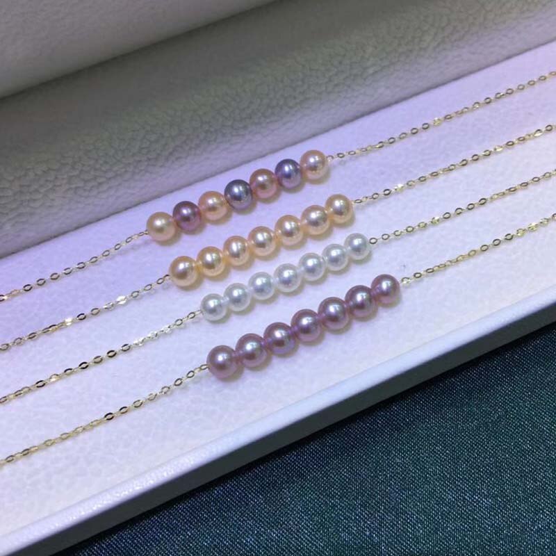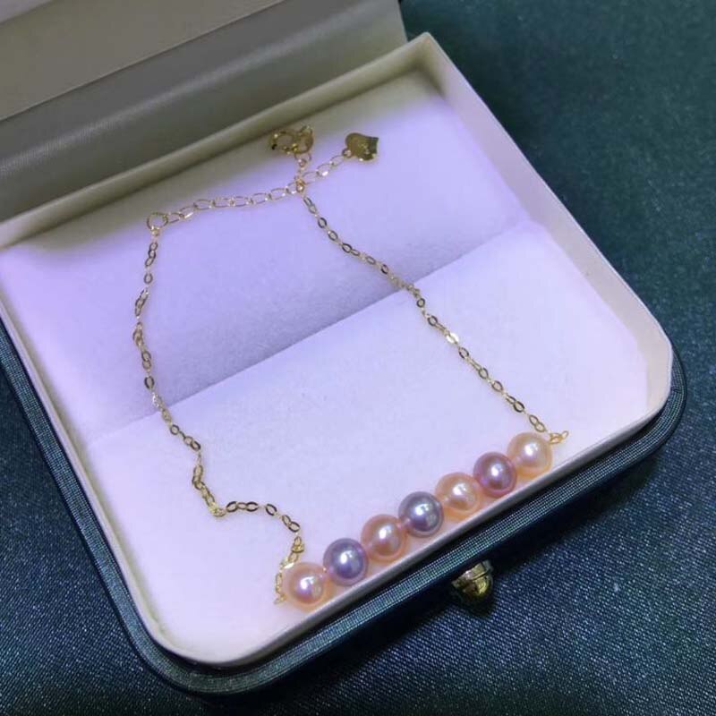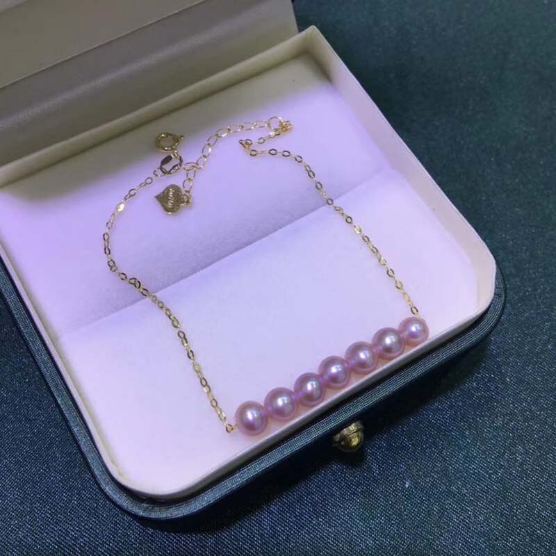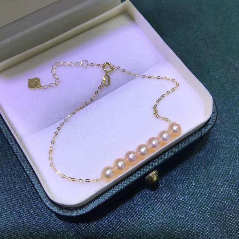 Gorgeous G18k solid gold bracelet fine 4-5mm round pearl jewelry gift for girls