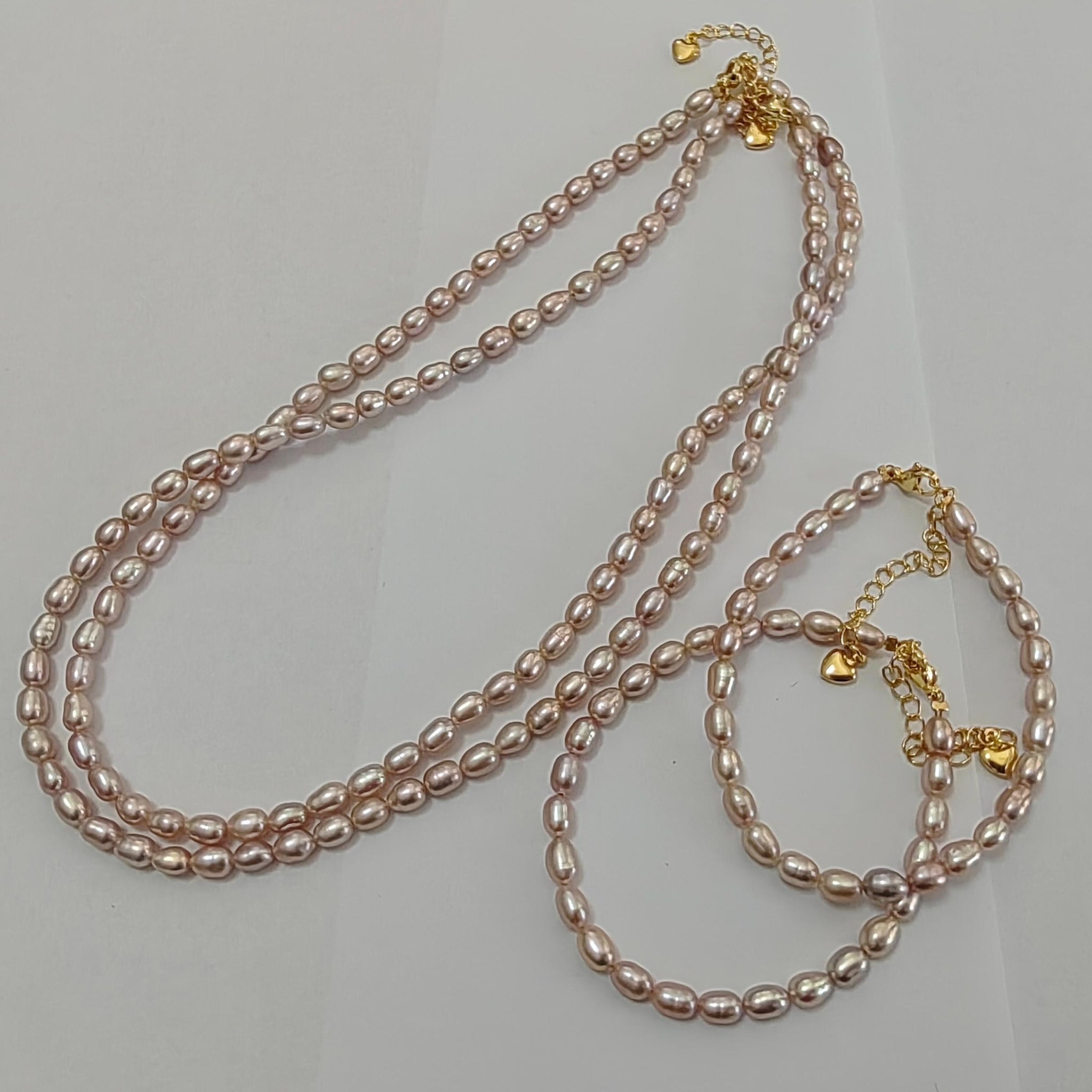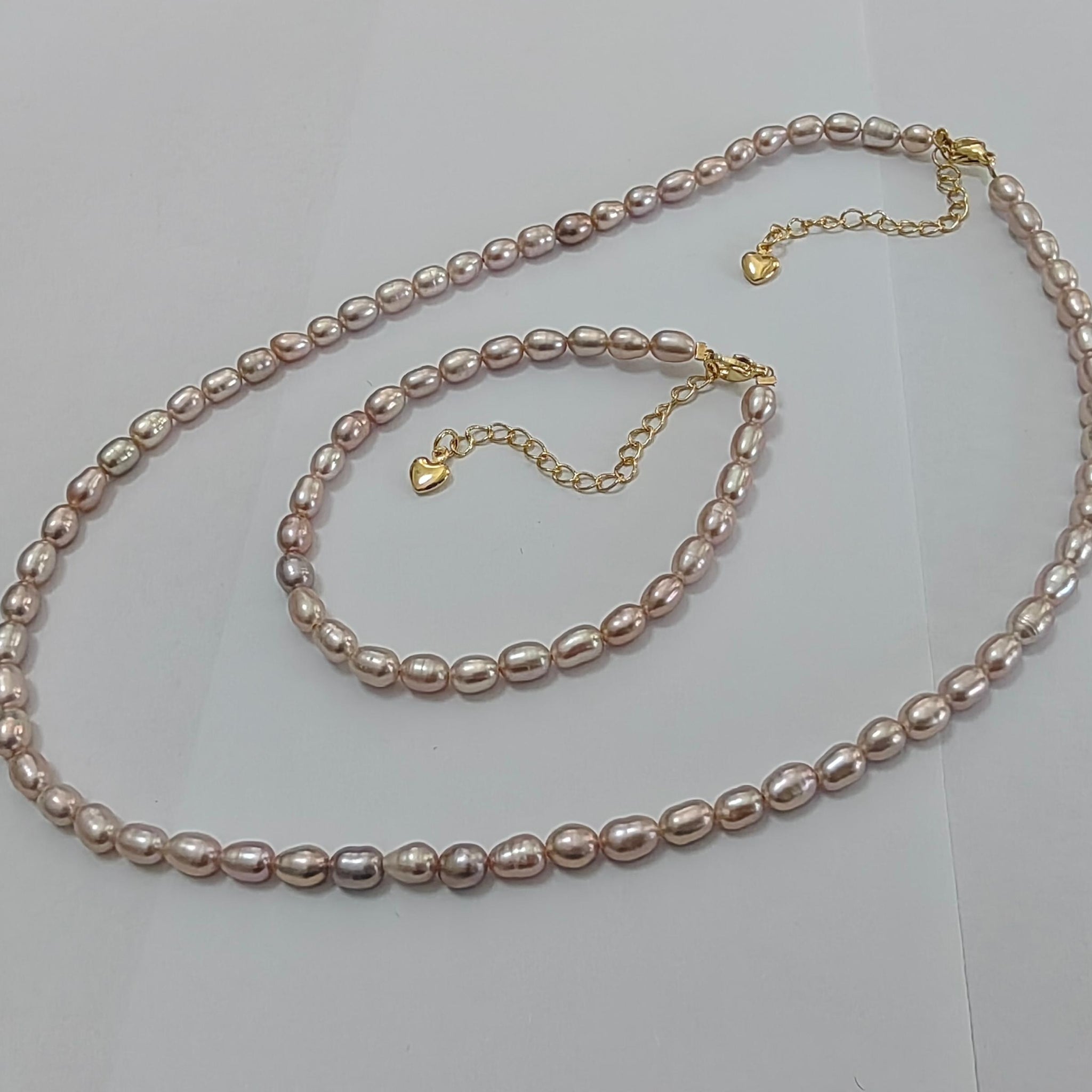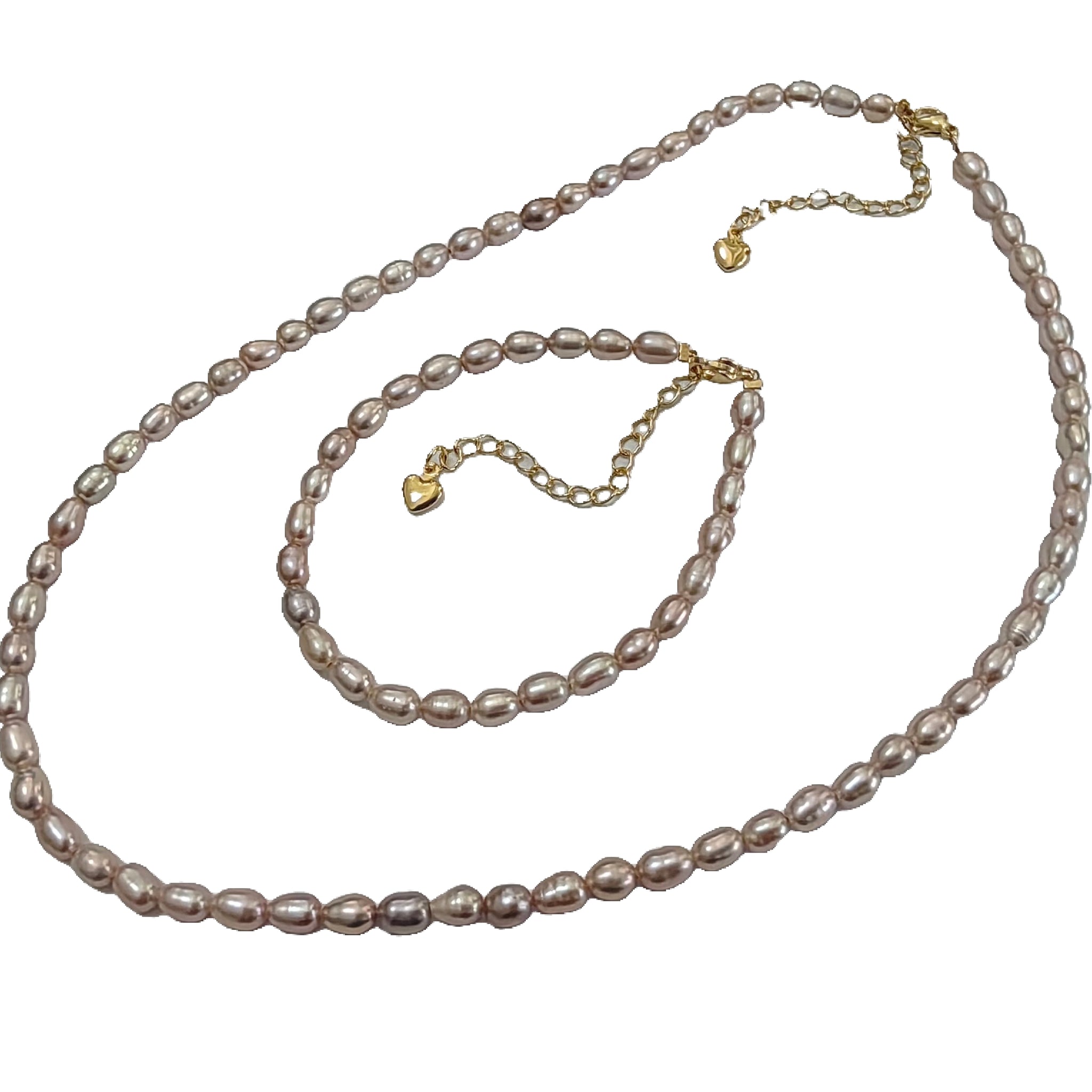 4mm Small natural light purple rice freshwater pearl necklace bracelets sets option