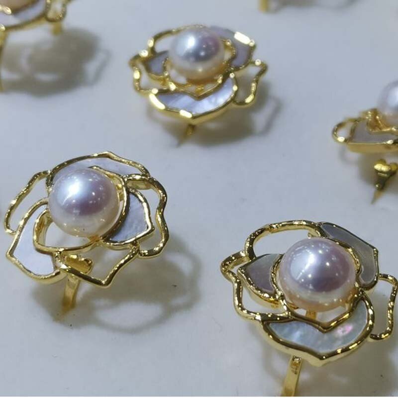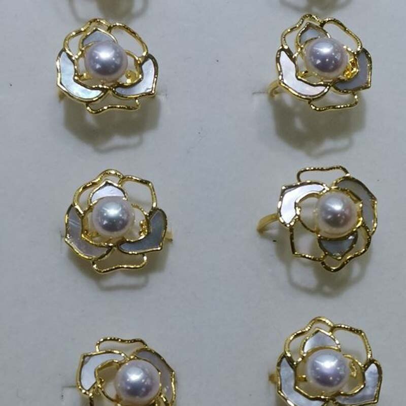 style #2: flower style 7-8mm white pearl 14k gold filled pearl rings