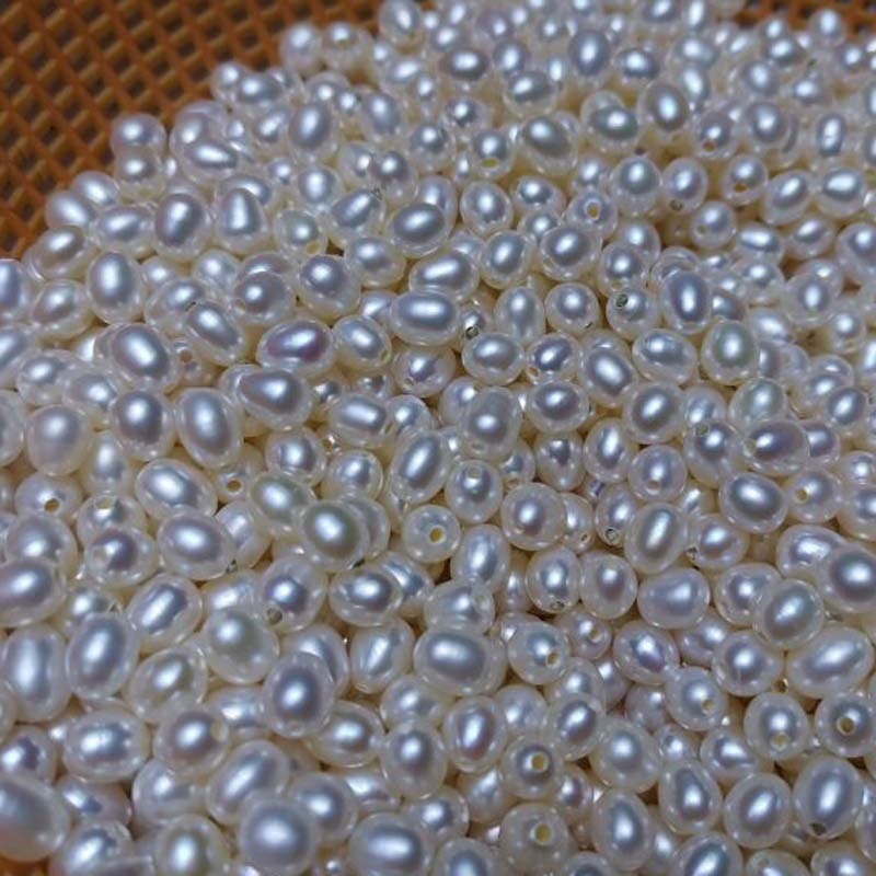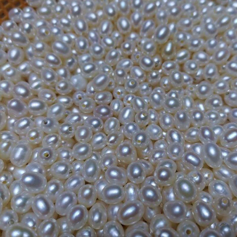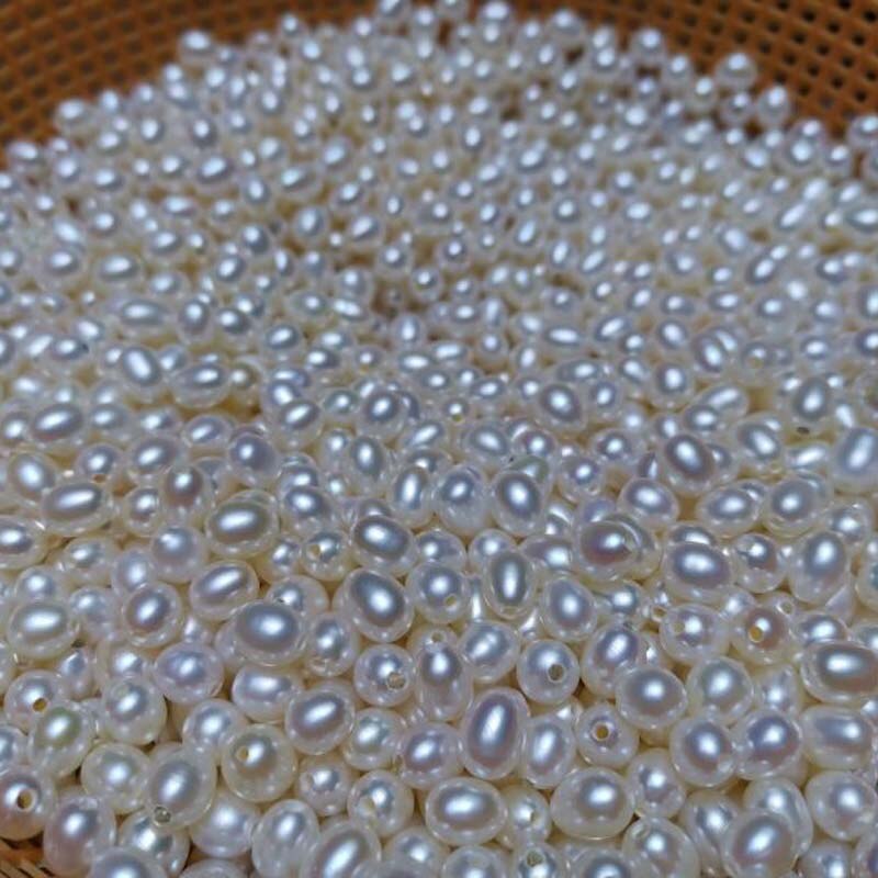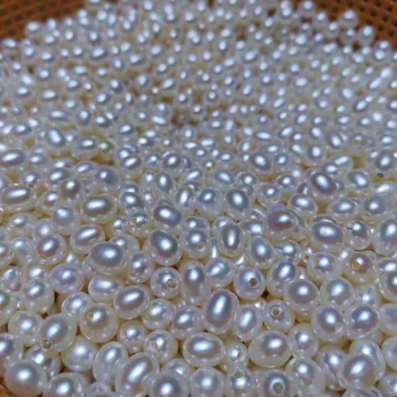 100 PCS wholesale loose pearls near drop rice freshwater pearl half drilled beads