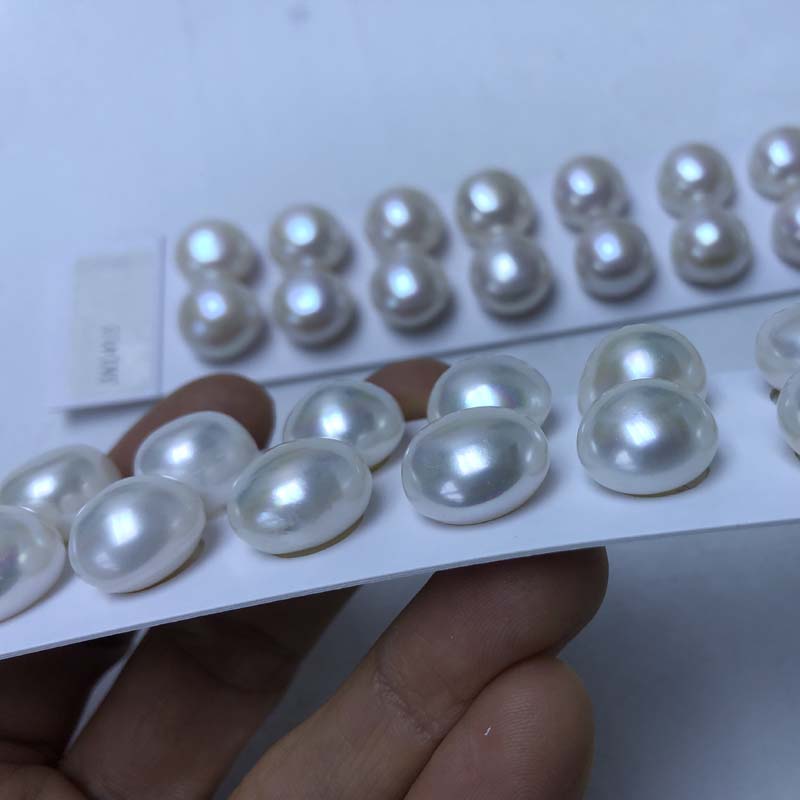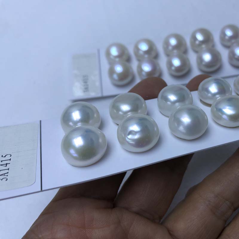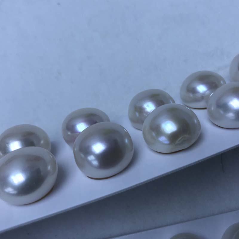 ELEISPL JEWELRY 13-14MM Half Drilled Buttion Freshwater Pearl For Earrings Pendant Ring