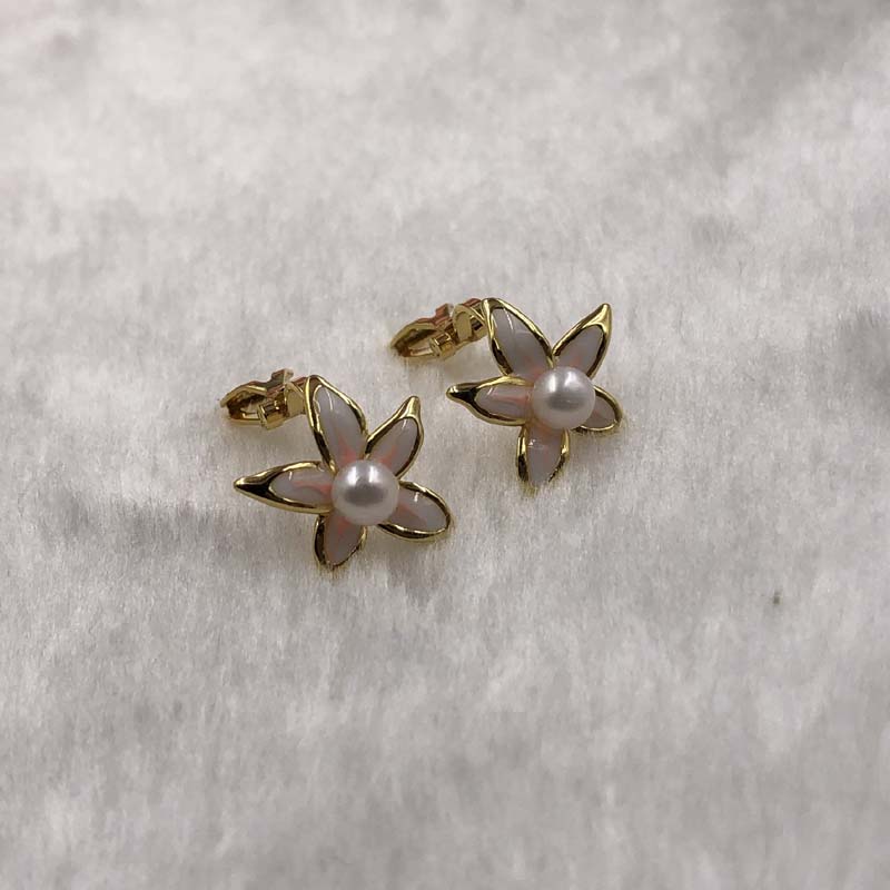 GENUINE Freshwater pearl 4-5mm button pearl. stars 14k gold filled Earring
