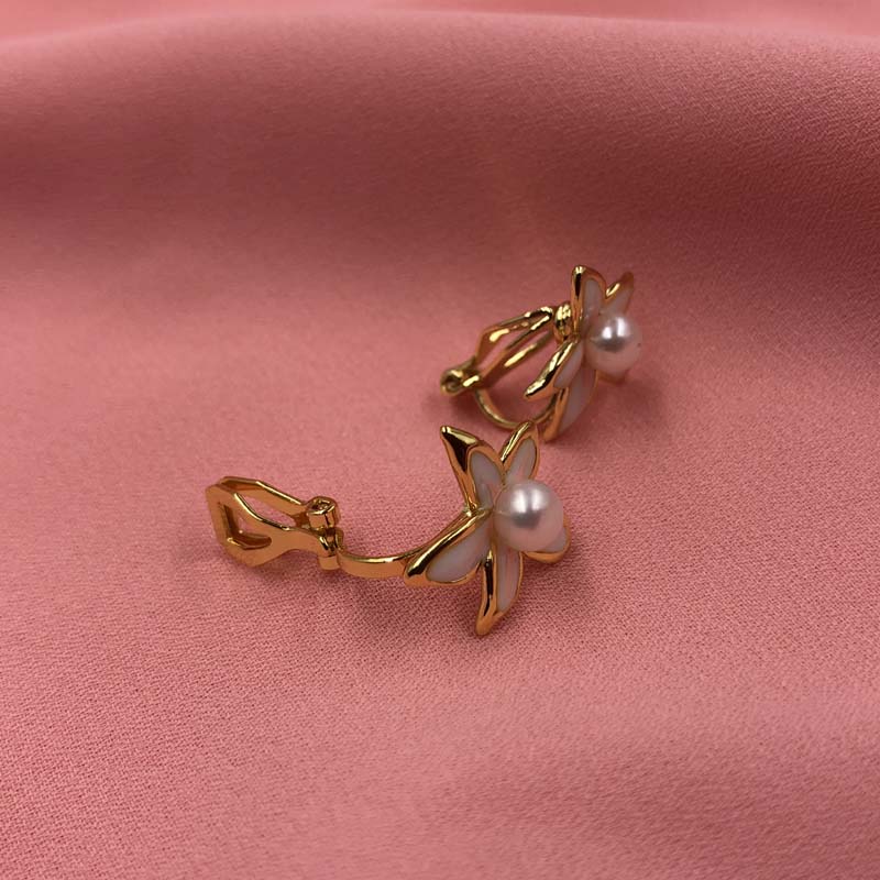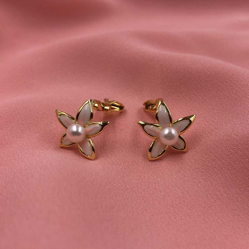 ELEISPL JEWELRY Ear Clip 10 Pairs 4-5mm White Pearl Earrings Stars Style
