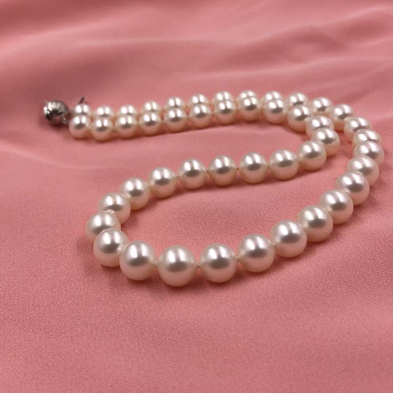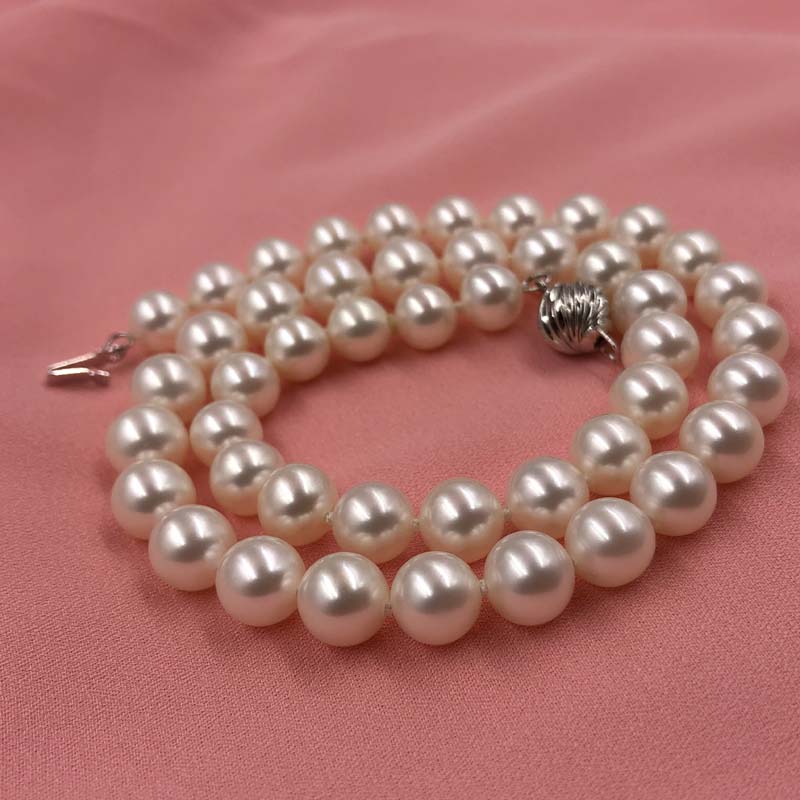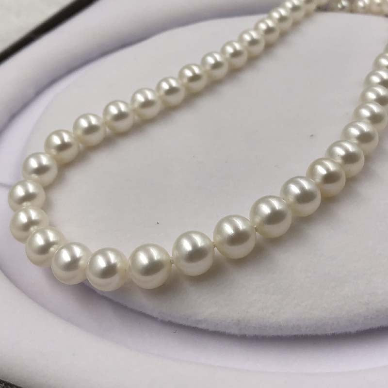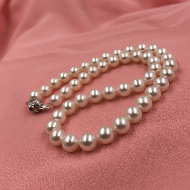 GENUINE Freshwater pearl necklace. good round pearl necklace. knotted between each pearl