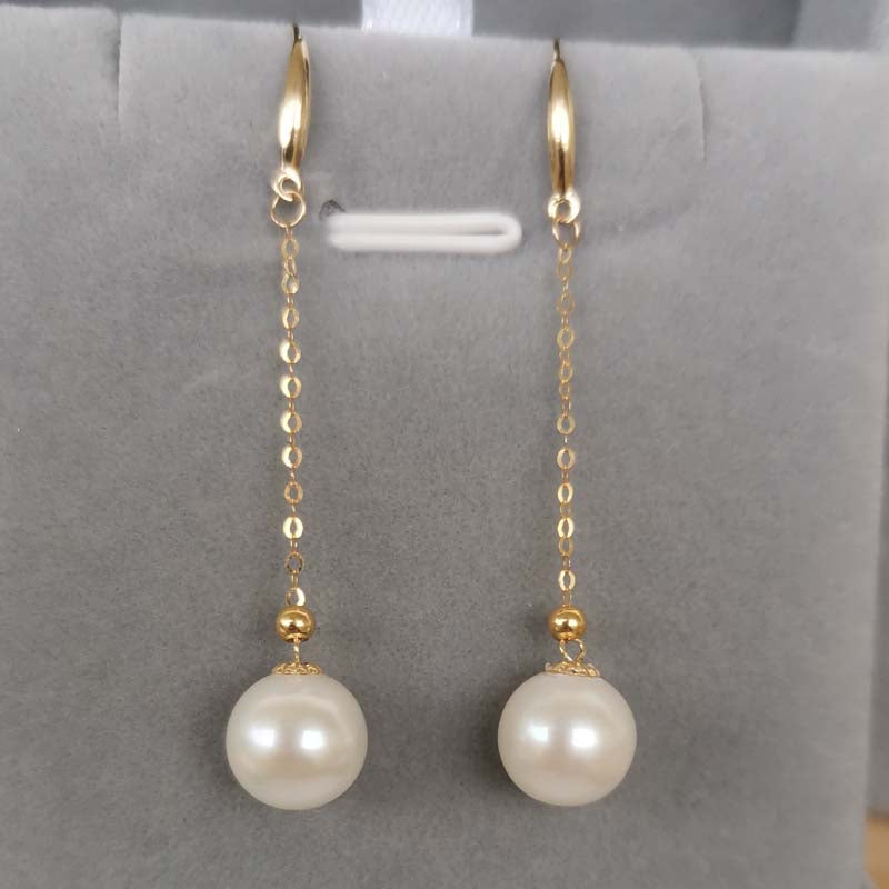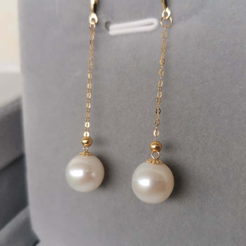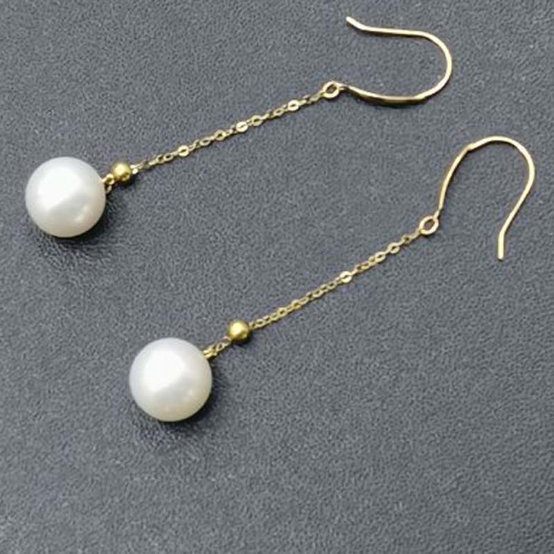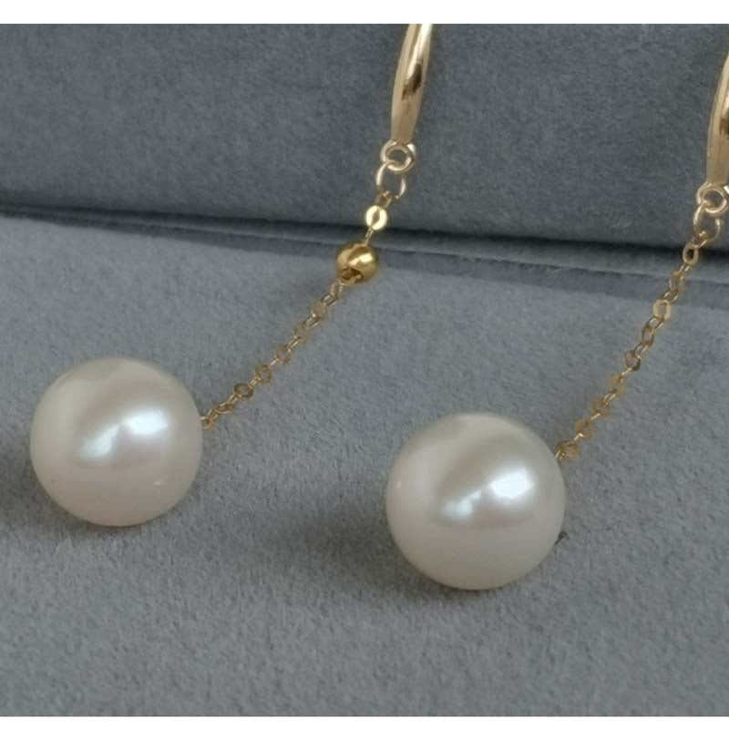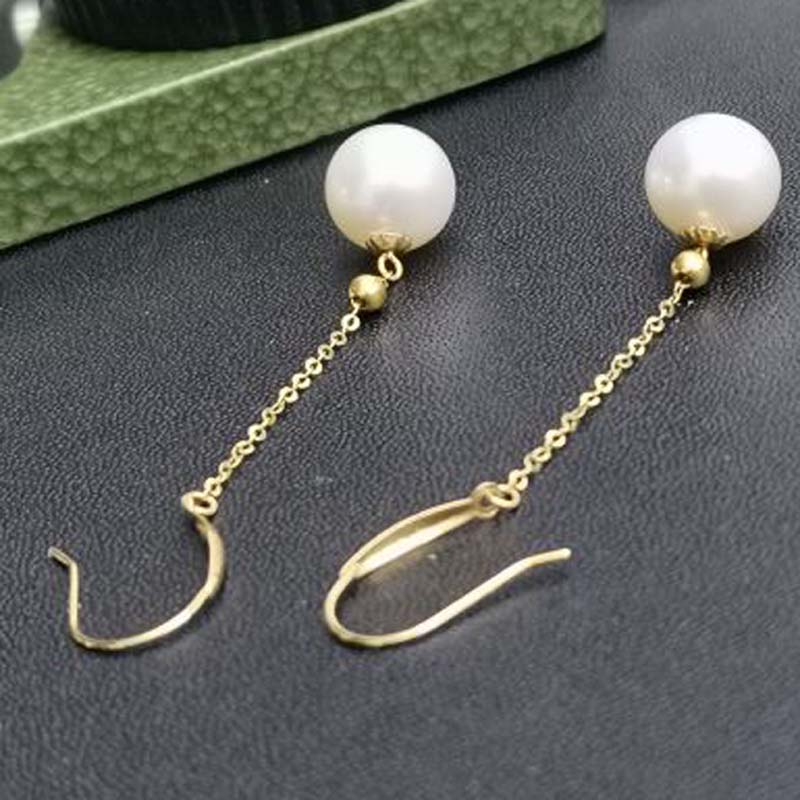 Gold 18K 8mm Round Natural Pearl Dangle Earring Women's Gifts 50mm