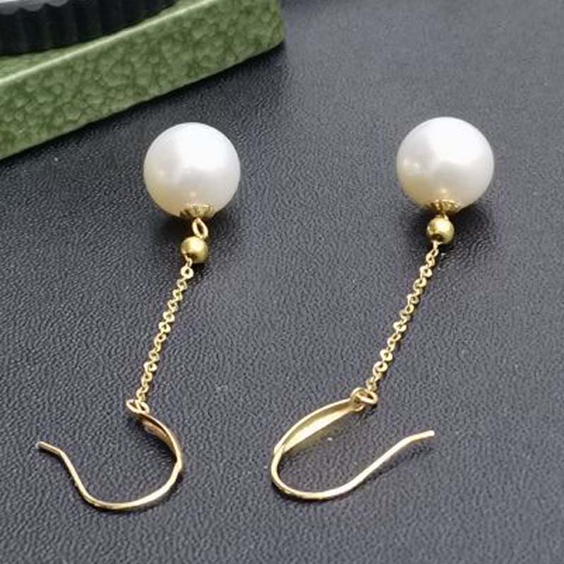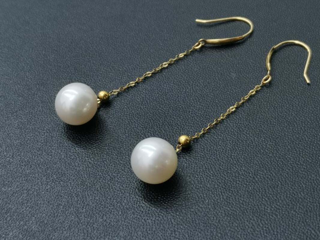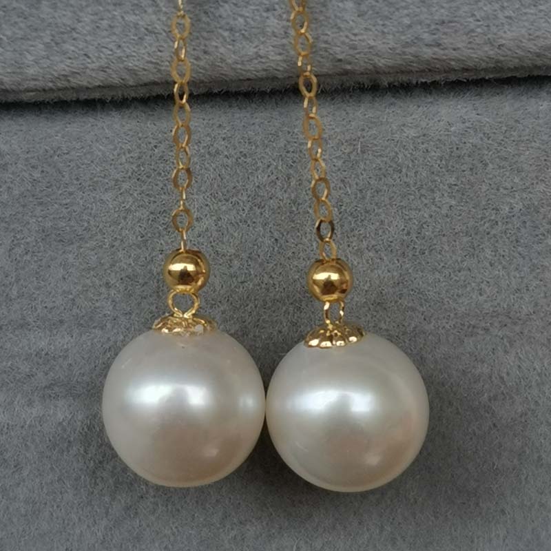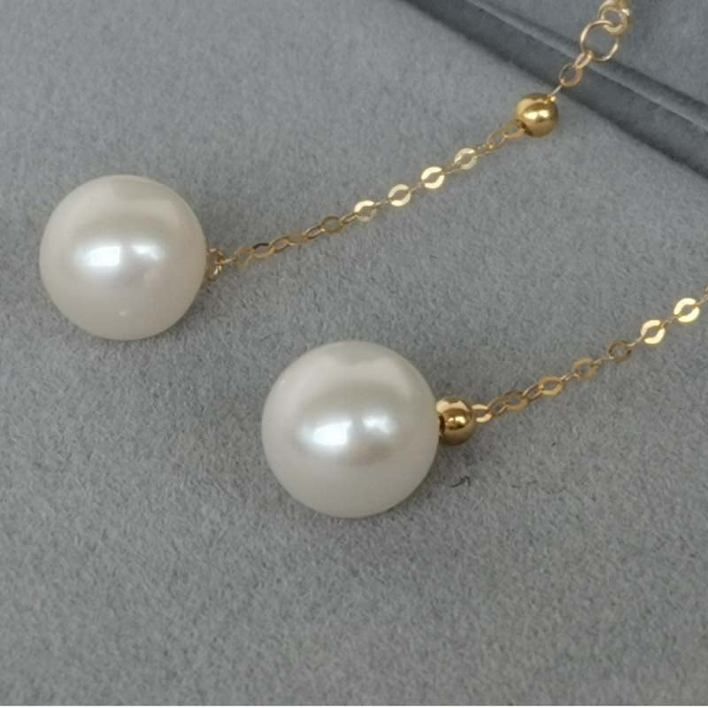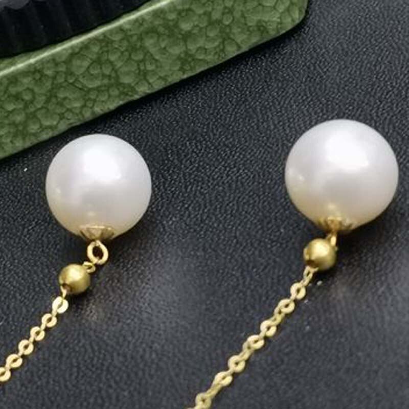 Gold 18K 8mm Round Natural Pearl Dangle Earring Women's Gifts 50mm