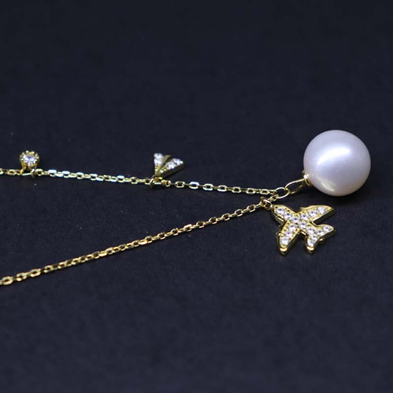 Gorgeous 8.5-9mm Round Pearl Pendant Sterling Silver Chain Necklace