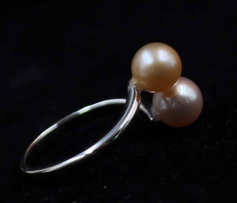 Gorgeous two-style 6mm round natural pearl ring free shipping