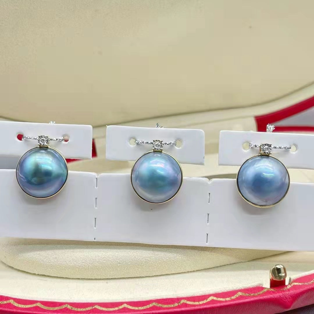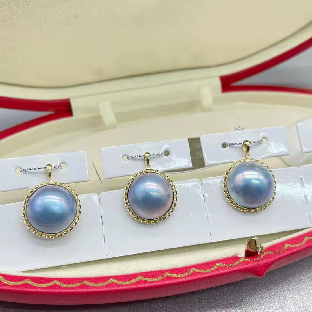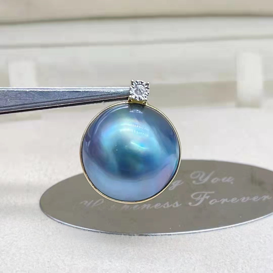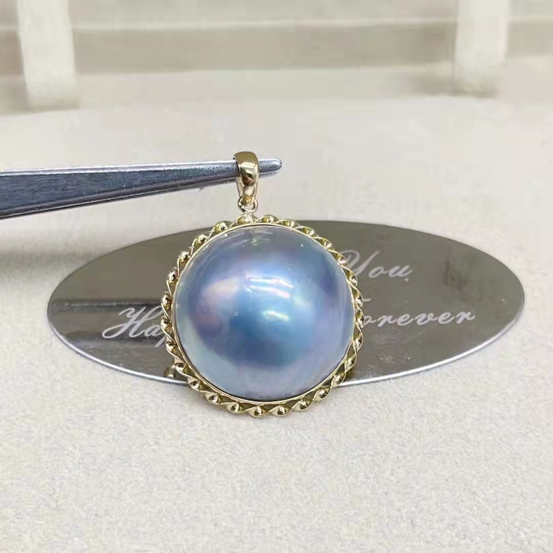 Huge 15-16mm Mabe Sea Water Peartl Pendant G18K Without Chain