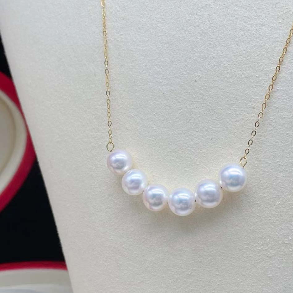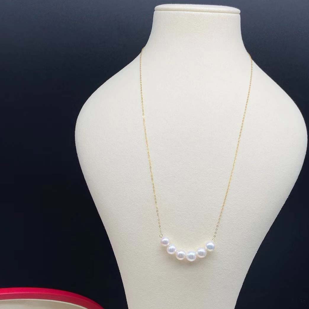 NEW AAA 6mm Round Freshwater Akoya Pearl Pendant G18K Solid Chain Necklace For Women