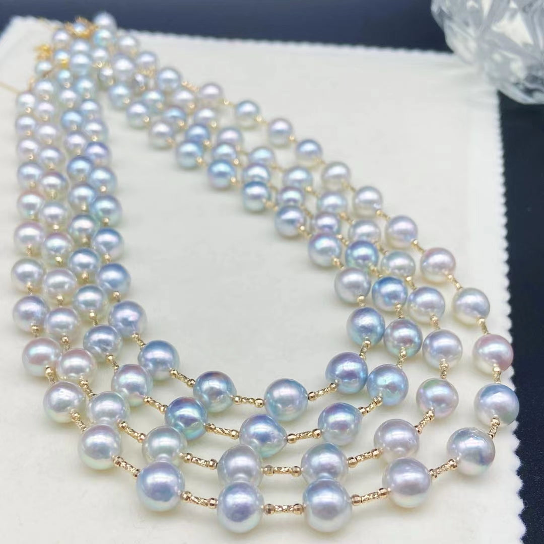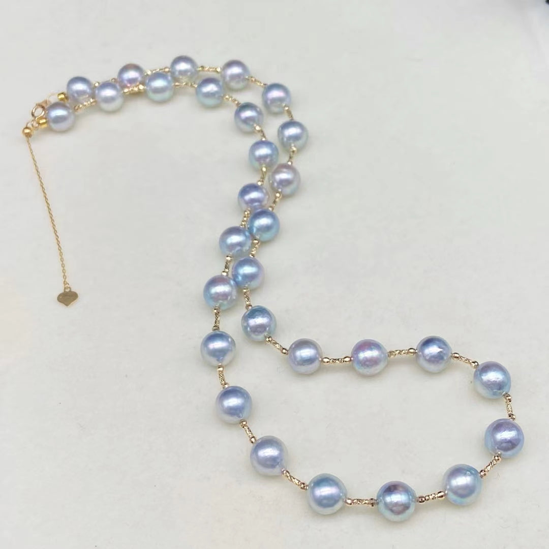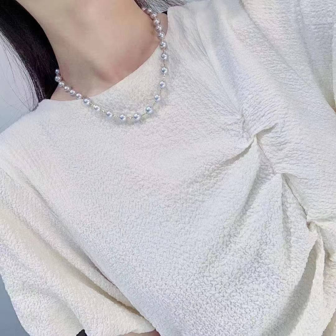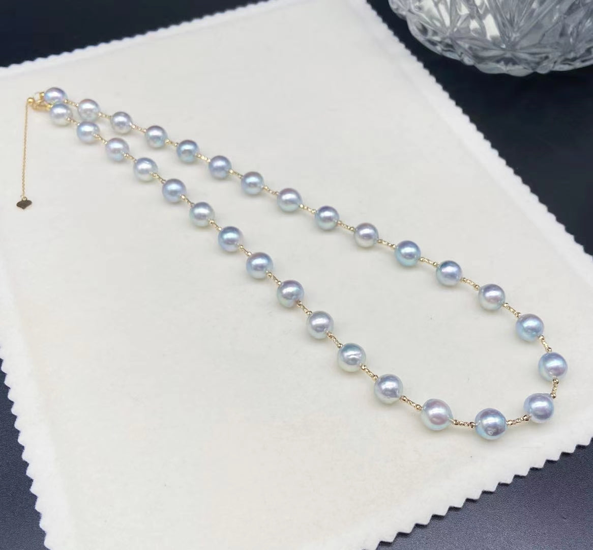Freshwater akoya white pearl. gray akoya pearl necklace
