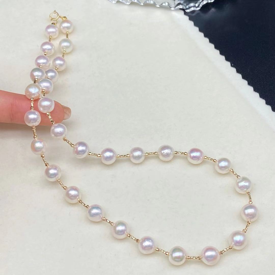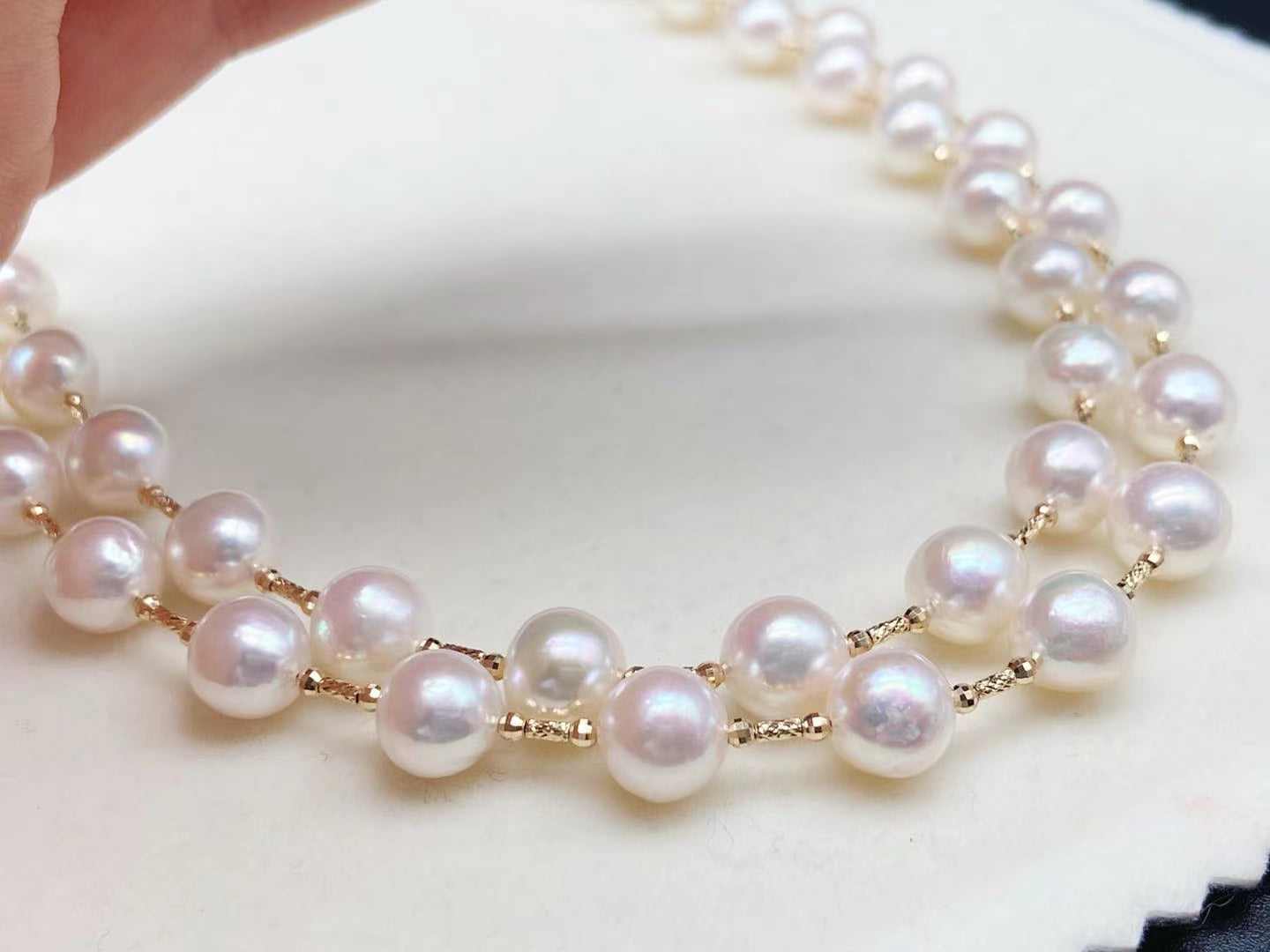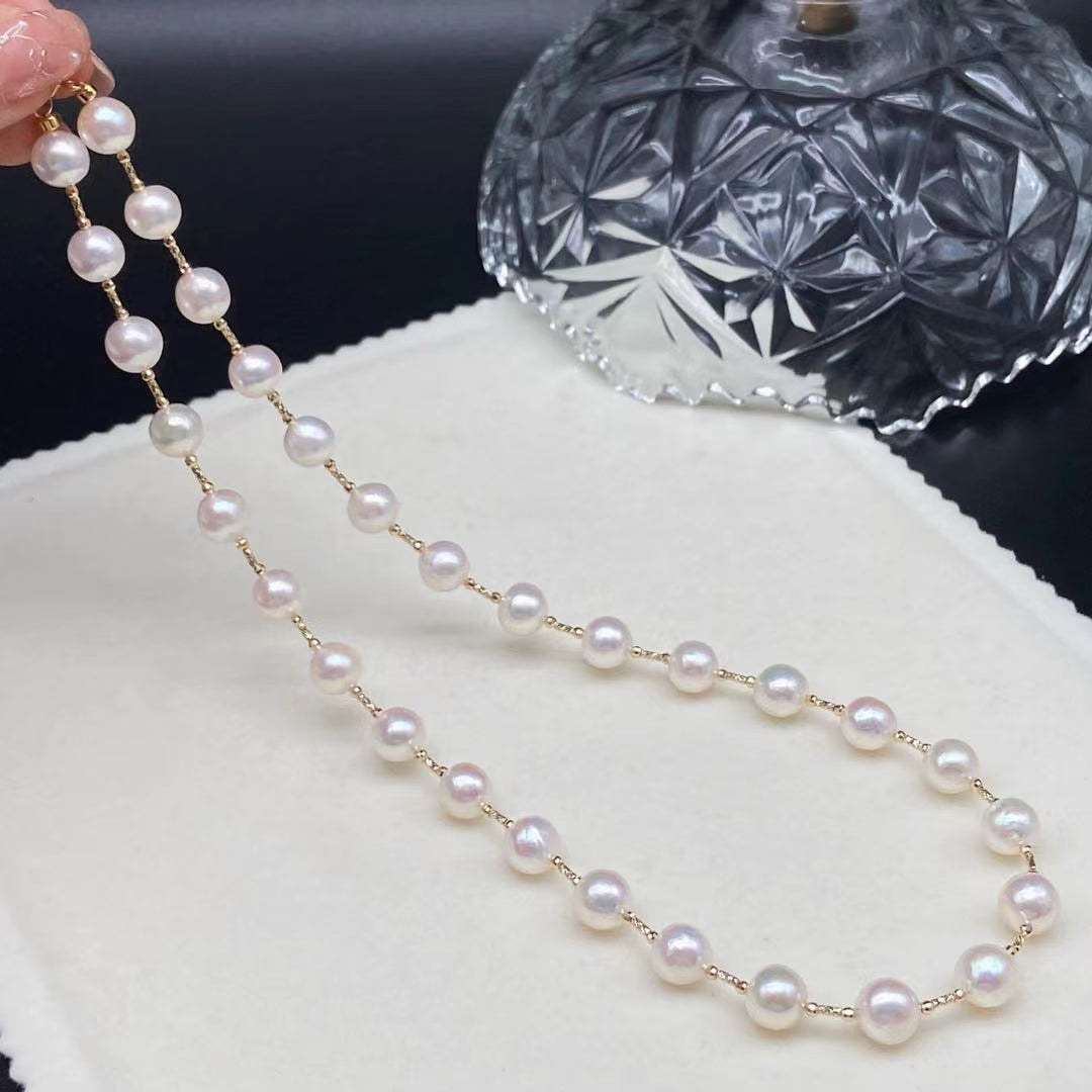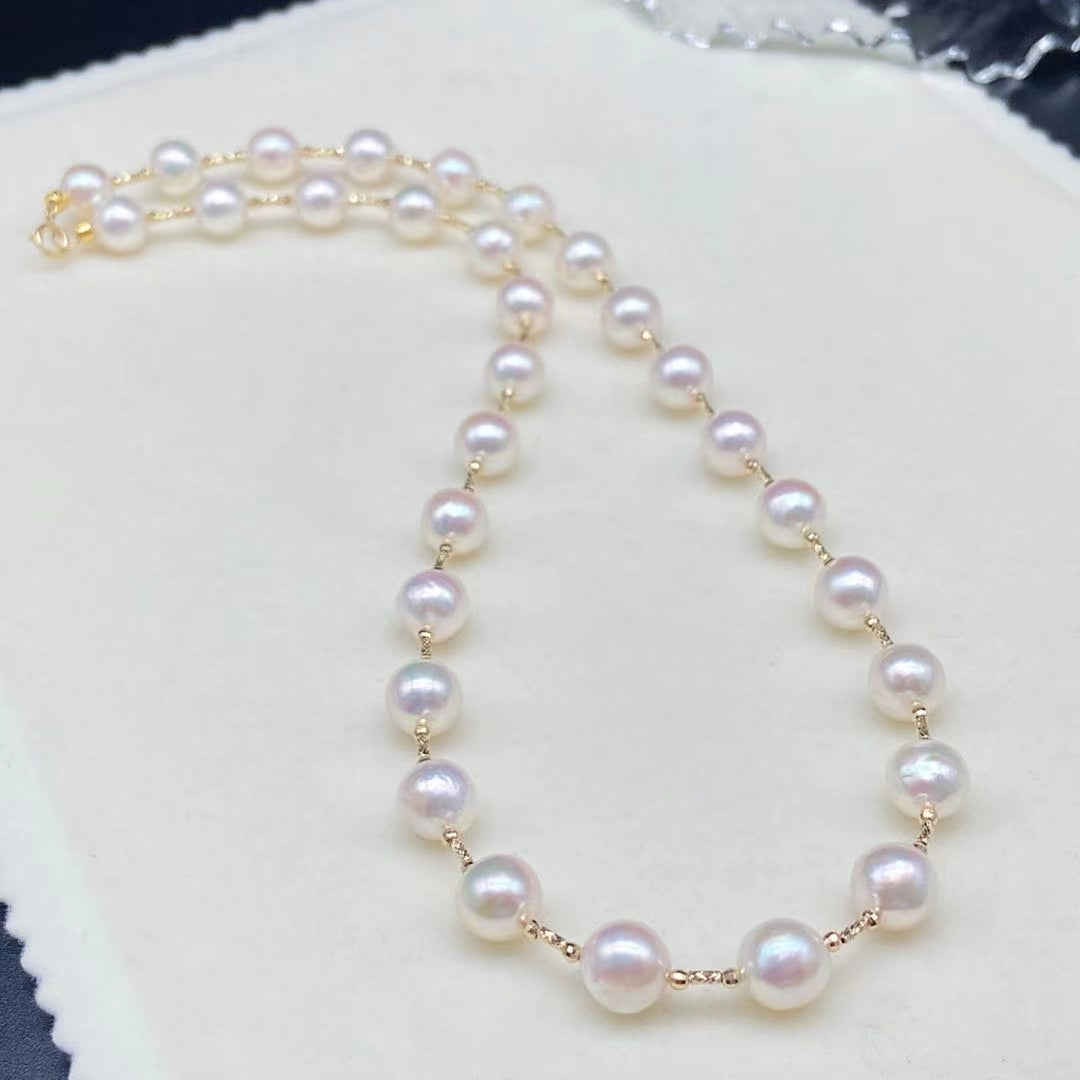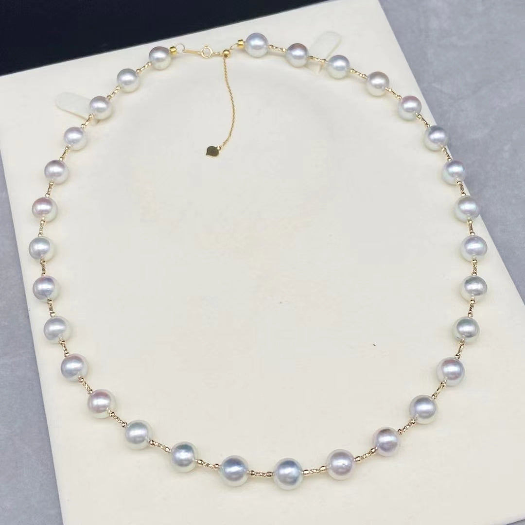 Freshwater akoya white pearl. gray akoya pearl necklace