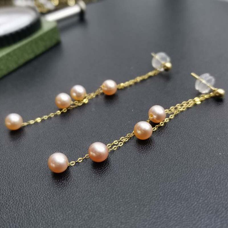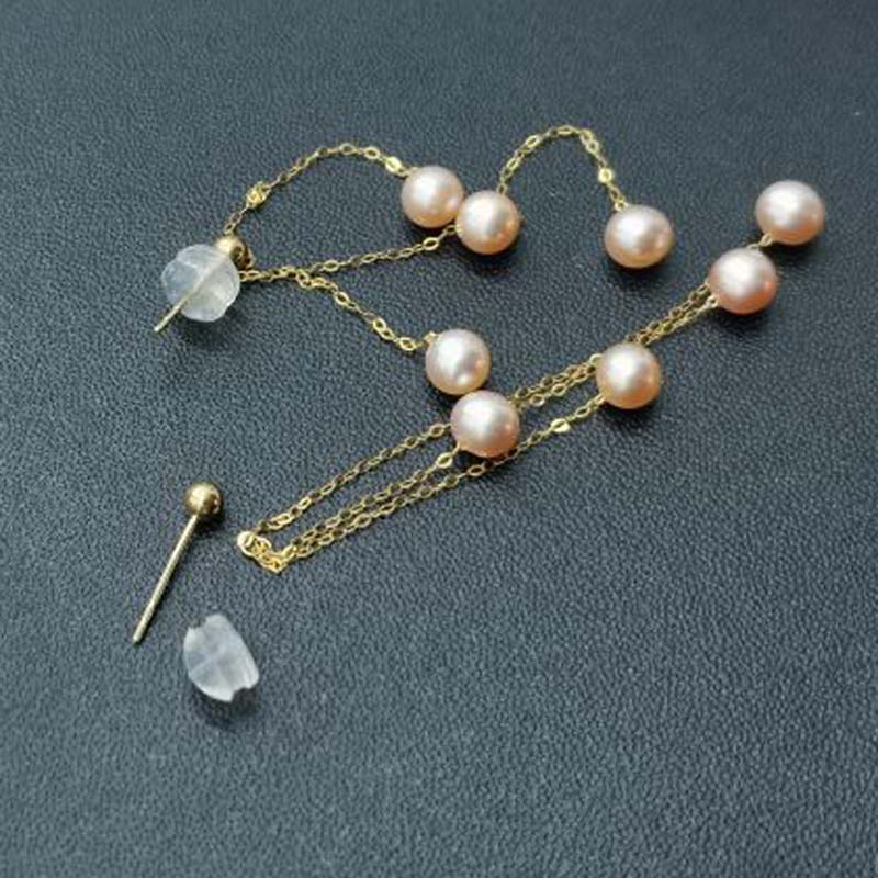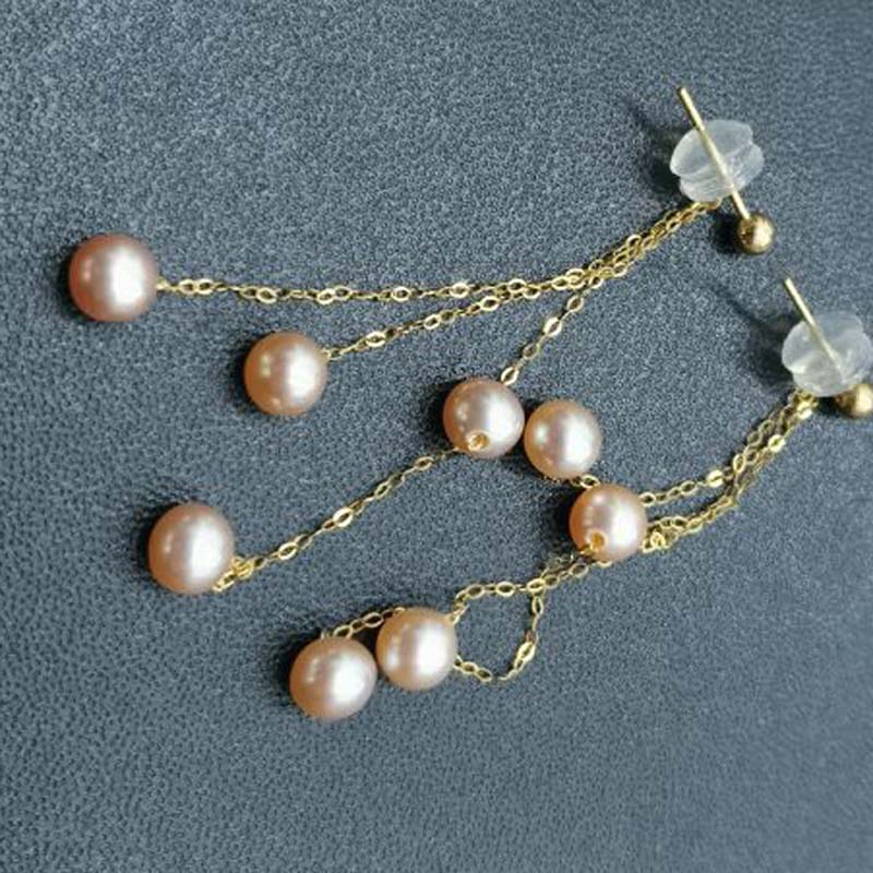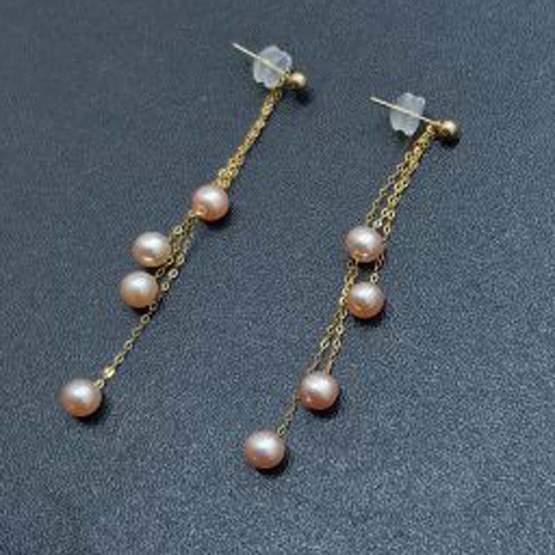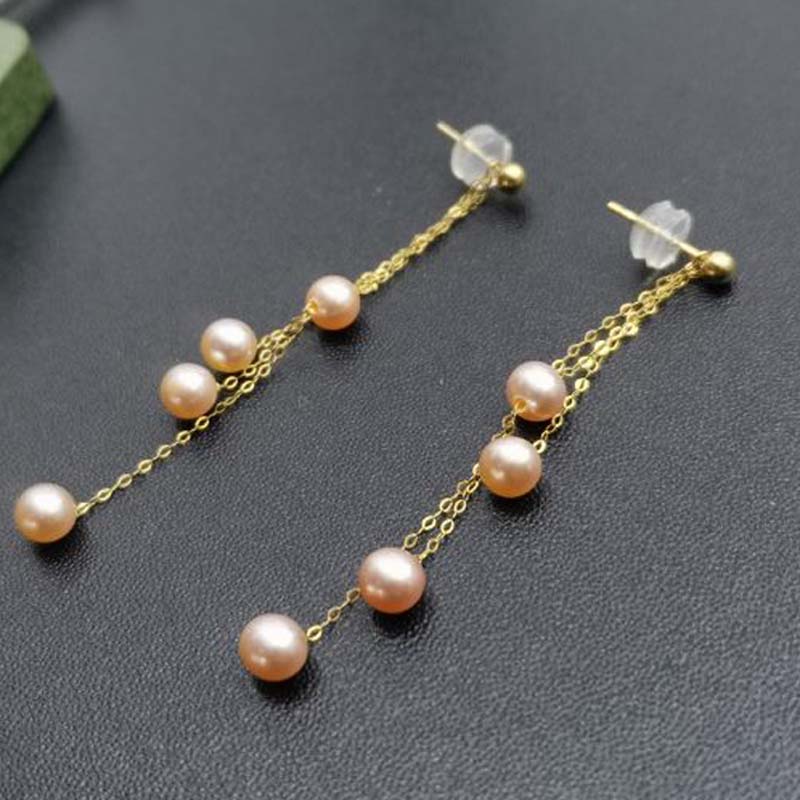 Small Fresh Water Pearl Dangle Earring 18K Solid Gold Finest JEWELLRY