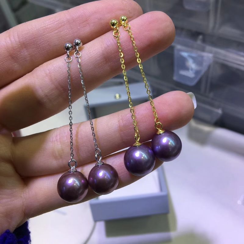 sterling silver 10mm purple freshwater pearl dangle earring long style jewelry for women