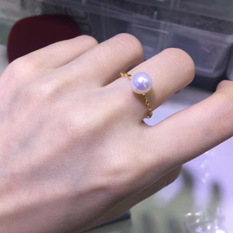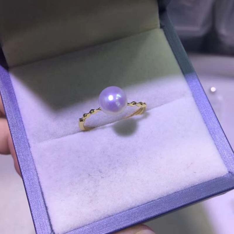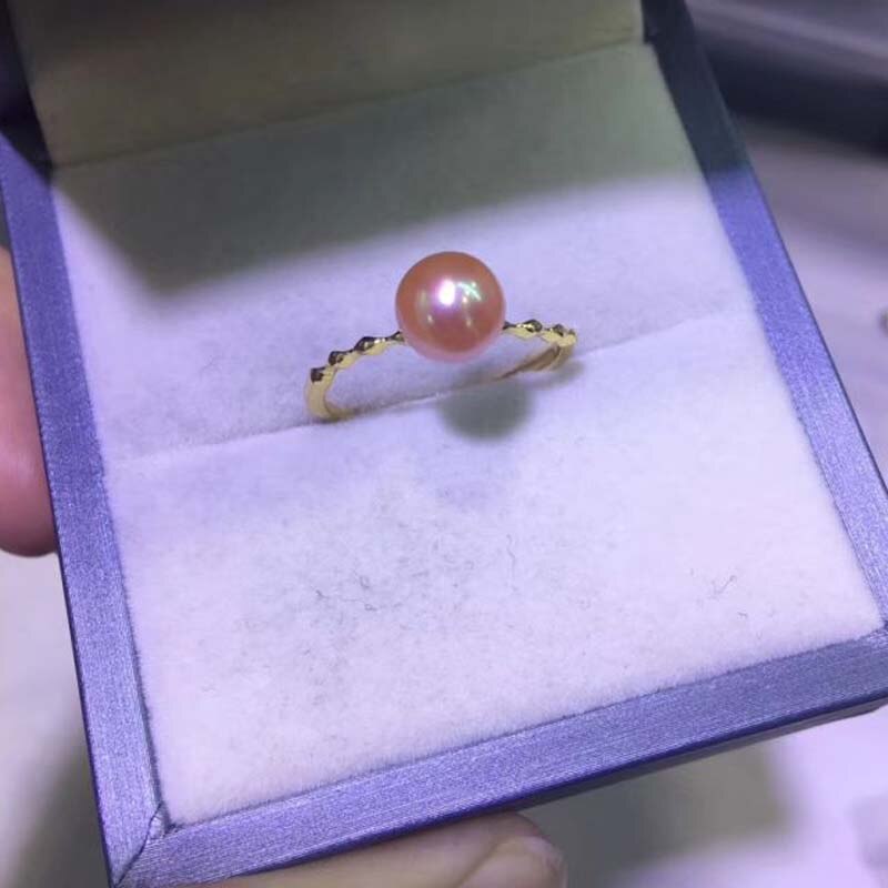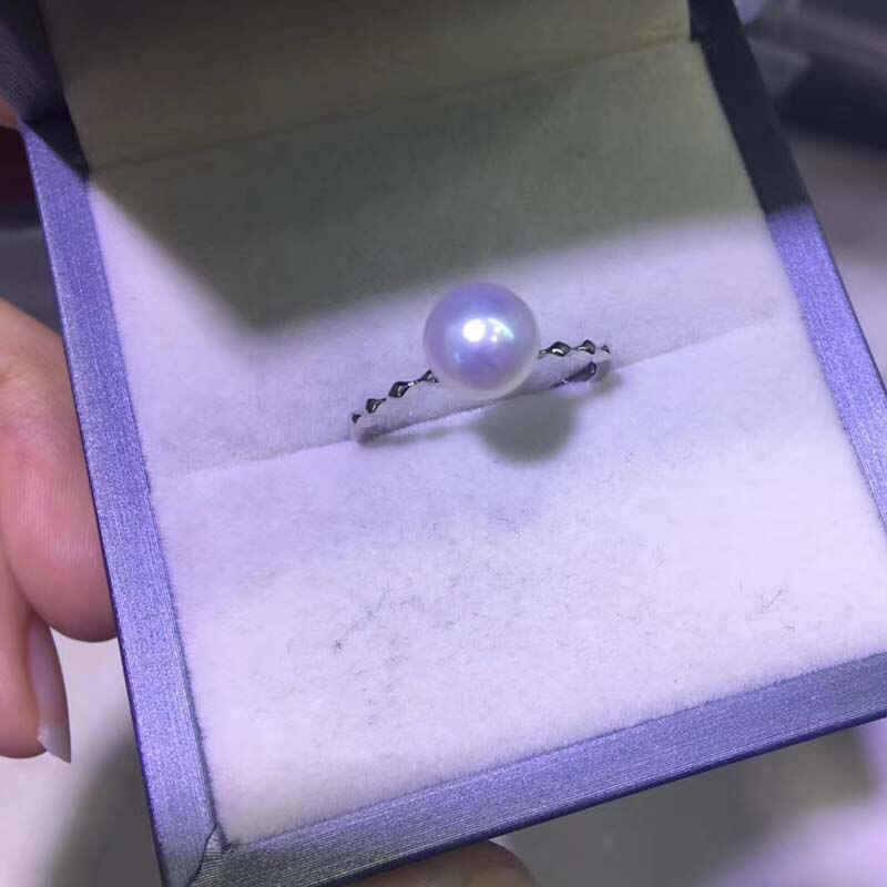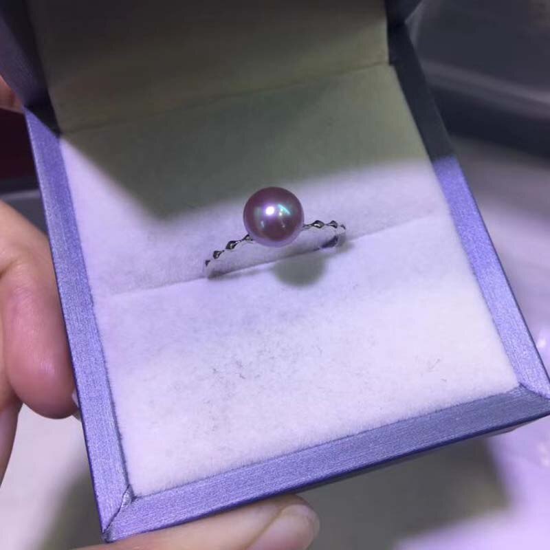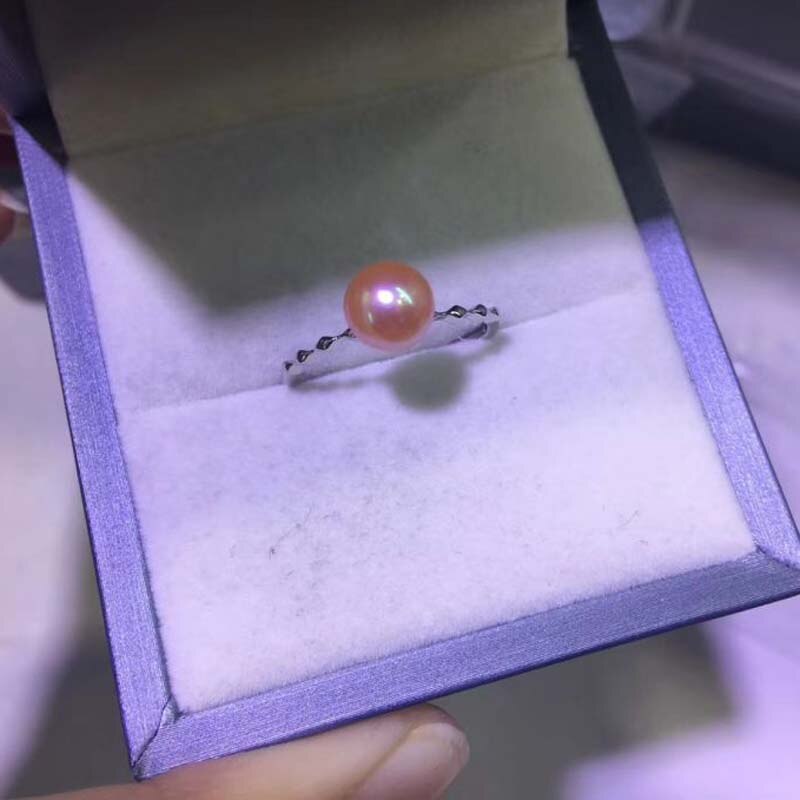 sterling silver round freshwater pearls ring 7-8mm white pink purple pearl jewelry elastic style