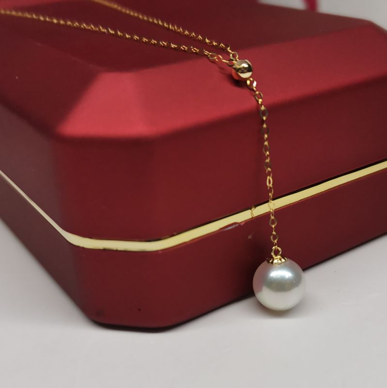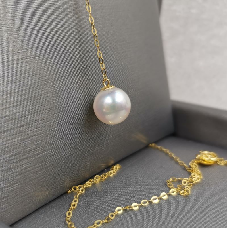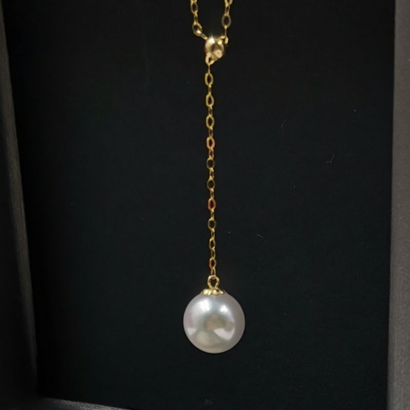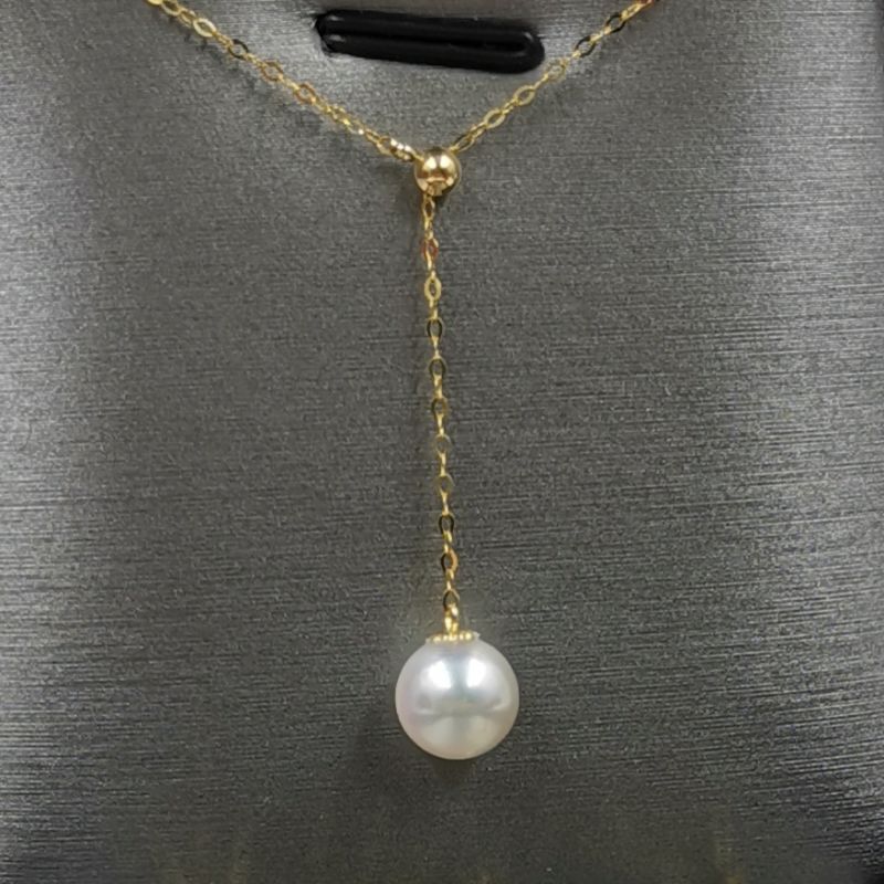 Top 8mm round sea water Akoya pearl pendant G18K Chain necklace wedding women;s jewelry