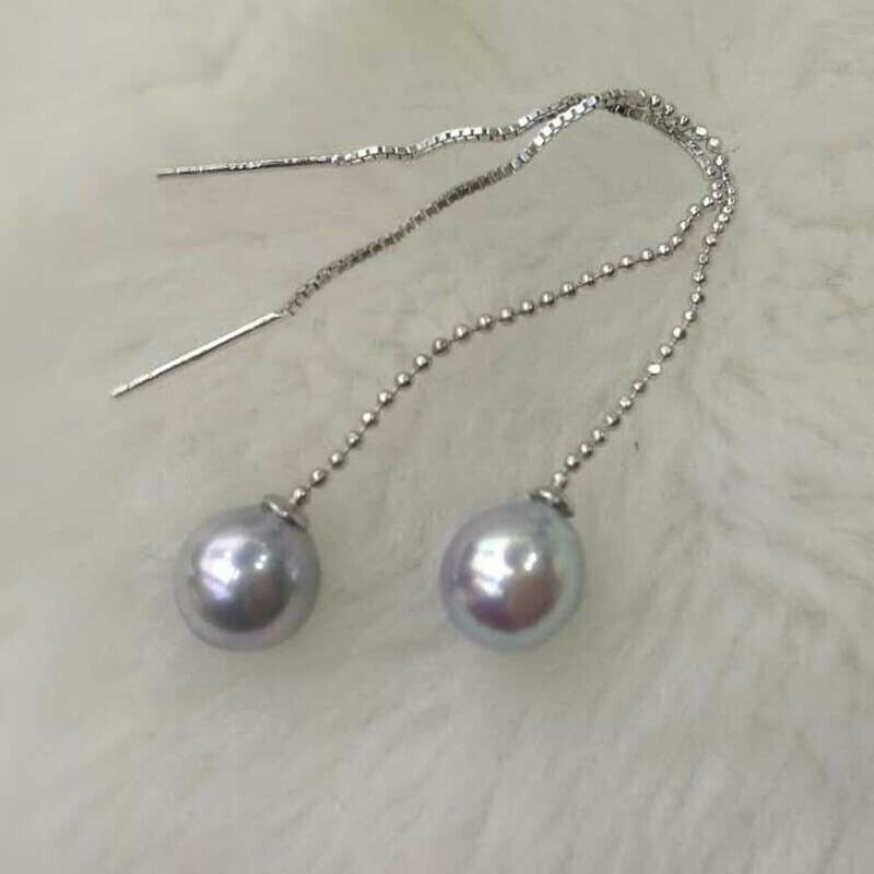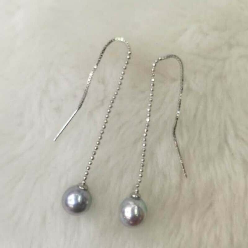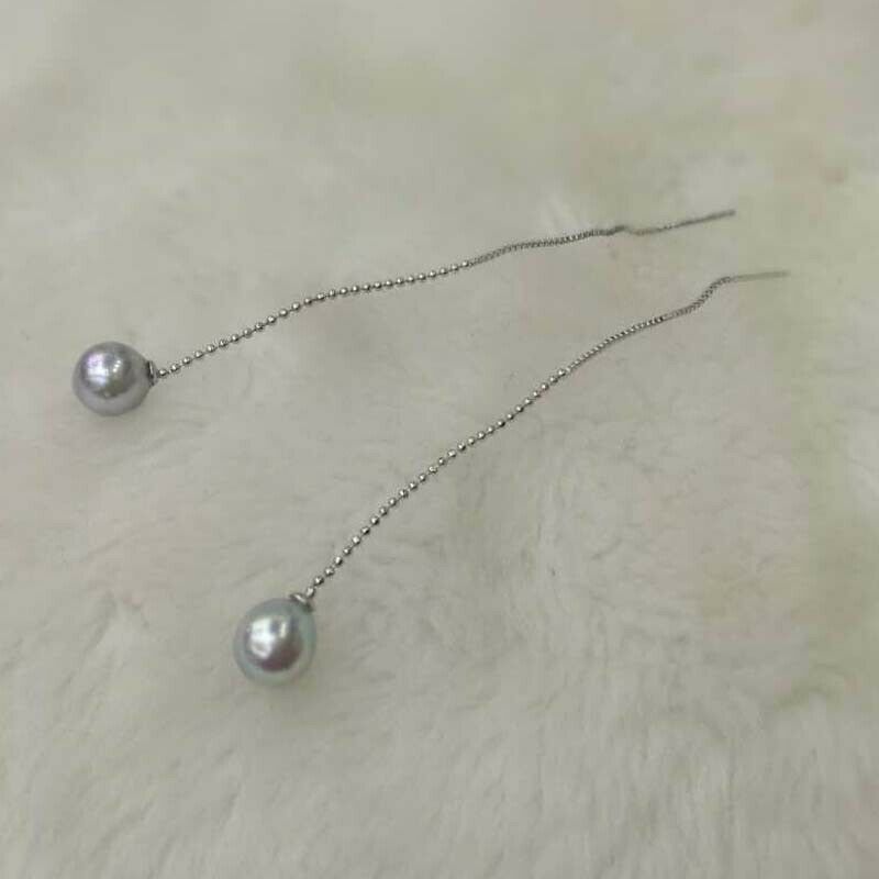 Western style earring 925 silver 8mm drop gray freshwater pearl