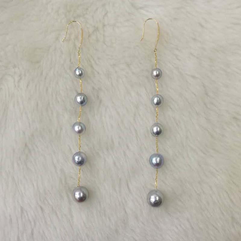 Western style G18k Beautiful silver gray pearl dangle earring