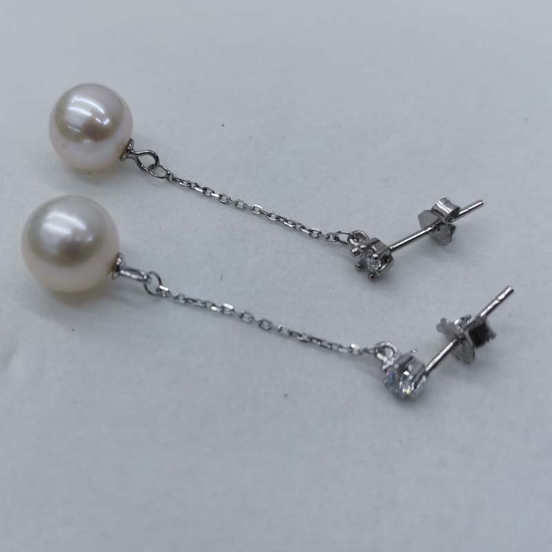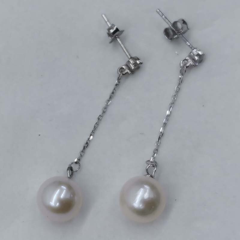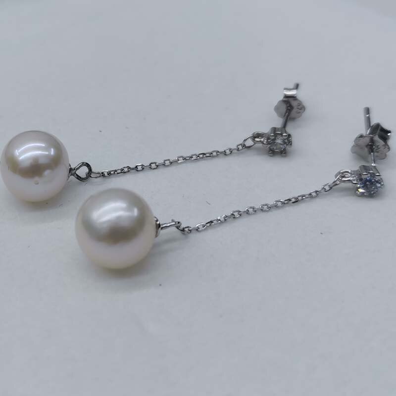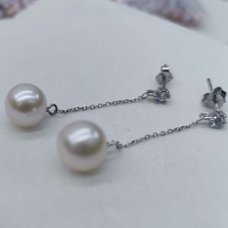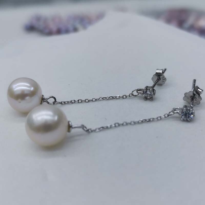 wholesale 10 pairs long earrings for women 8-9mm round freshwater pearls s925