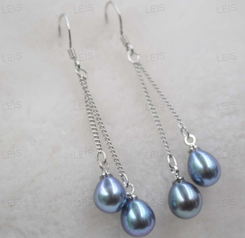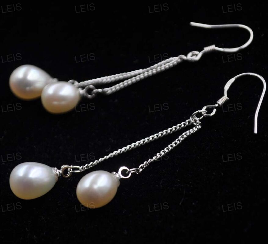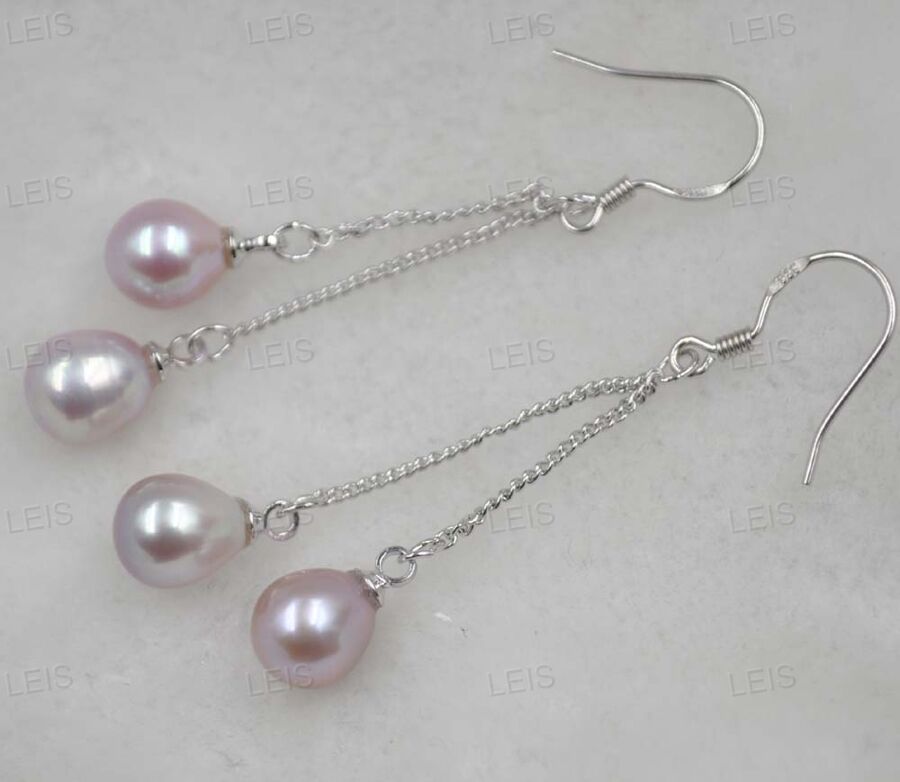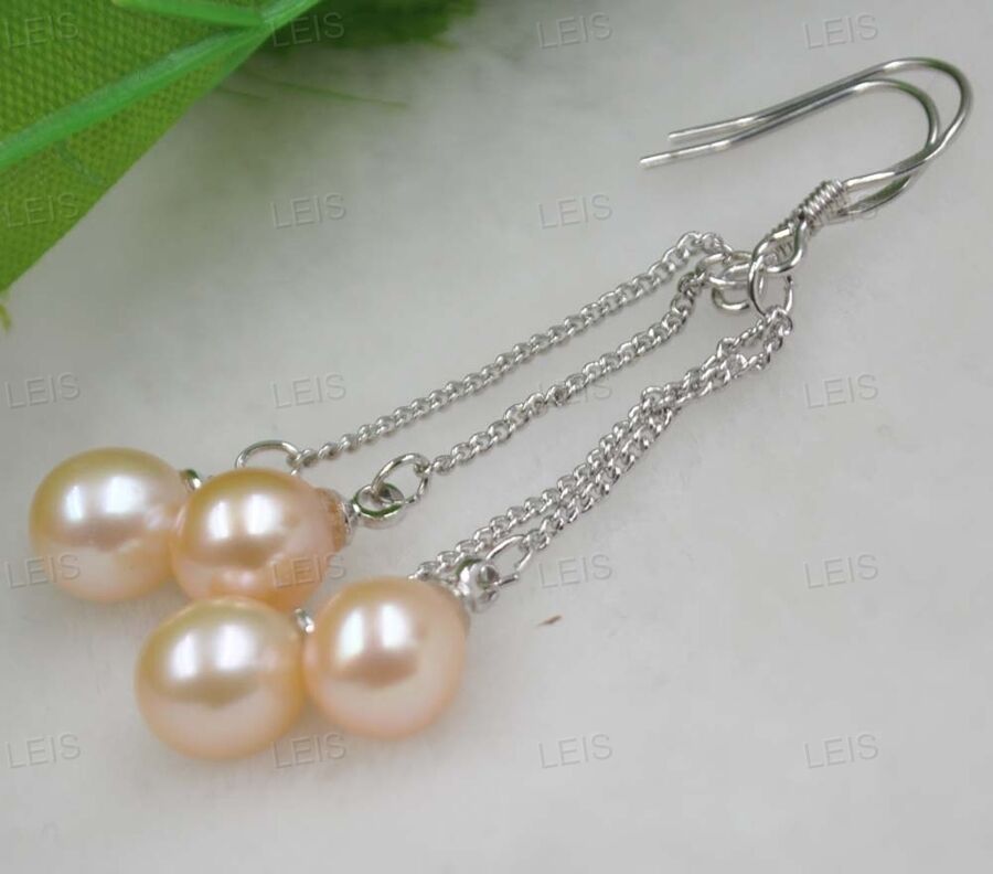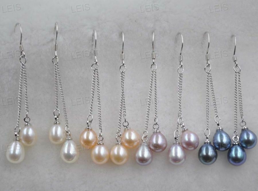 wholesale 4 Pairs 7-8mm drop genuine freshwater pearl dangle earring long s925