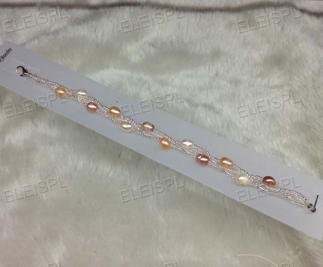genuine cultured pearl. rice freshwater pearl bracelets Size: approx5-6mm pearl Color: white pink purple Quantity: 24 Strands Length: 18cm each strand Conditions: Brand new